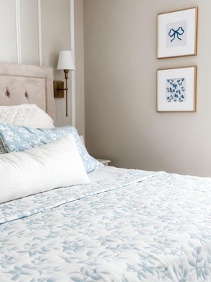 [This review was collected as part of a promotion.] This quilt set in the blue added the perfect Summer touch to our bedroom. Love that it is reversible, the perfect lightweight material for the season and so pretty to look at!