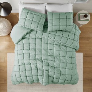 Transform your bedroom into a cozy dream with the Intelligent Design Dream Puff Comforter Mini Set. The 3D puff stitching creates a beautiful, airy cloud-like look, and is overfilled for an extra-lofty look and feel. The crinkled quilted design ensures an even distribution of the fill for an optimal sleeping experience. The set conveniently includes a comforter and matching shams, and is machine washable for easy care. If there is no free movement in washer/dryer, use large capacity commercial washer/dryer.