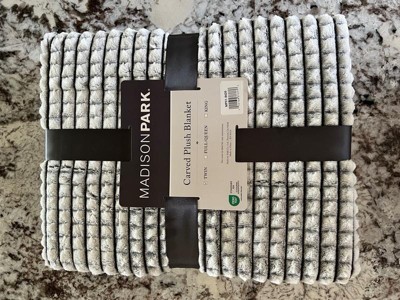 Madison Park Twin Carved Print All Season Plush Soft Comfort Blanket Gray: Microfiber, No Fill, Machine Washable