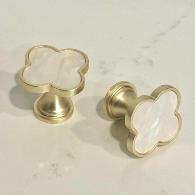 [This review was collected as part of a promotion.] These arrived just in time for a nightstand refurbishment. I love upgrading old furniture and these cabinet knobs were perfect! They are heavy and the detailed work on them is flawless! The gold coloring is the perfect shade, complemented by the Mother of Pearl. I wasn’t sure about the shape but it was the perfect choice, offering a modern twist and “old money” feel. I’ll be ordering more for other projects because of the quality!