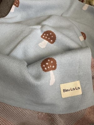 I love this baby blanket! so many wonderful features! 100% organic cotton. Super soft and buttery smooth knit like on the outside in the sweetest neutral tan color. Other side is also super soft cotton in a sweet striped tan and white. The materials are high quality cotton and you can definitely tell from the softness and weave if the knit. It has the sweetest little mushroom print on one side, again making it totally neutral. It is a great size for baby, toddler or younger child and would definitely grow with them. It comes wrapped so sweetly too iwth a ribbon tied with the brand name, further showing the quality. I will definitely be buying these for every baby shower gift!