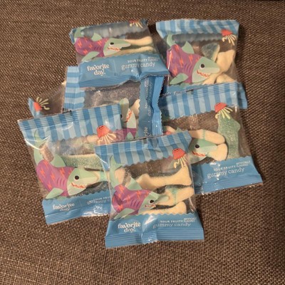 Sour Gummy Candy Sharks Party Favors - 5oz/6ct - Favorite Day™ are really nice. Super delicious sweet and tangy berry flavor. Product has a really nice soft chewy texture that is easy to chew up and swallow. The packaging is colorful, bright, and cheery. I would highly recommend!