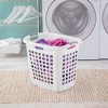 Easily carry dirty clothes to the washer and clean clothes to your closet with these plastic laundry hampers. Lifting large loads of laundry is made easier and more comfortable because of the sturdy construction and reinforced rim. These clothes hampers have integrated handles on all 4 sides for easy lifting and carrying through narrow doorways, hallways, and up and down stairs.