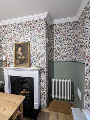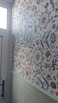 Loved the wallpaper when I saw it online, but it looks even better once it's on the wall. Greens, blues and pinks work so nicely together and are perfect for the space I've used it in. Really thick paper, so you can be pretty rough with it- I had to use a Stanley knife instead of scissors as they just wouldn't score through the paper. So pleased with how it turned out, would definitely recommend