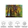 This ready to hang, gallery-wrapped art piece features trees with bright, colorful leaves.Mandy Budan began studying art in highschool and advertising design in college. Mandy worked for many years as a graphic designer in both print and digital media. Always fascinated by the vibrant colours and shapes that make up the Canadian landscape, Mandy started painting in 2000. She works with acrylic paint on wood panels, she works to transform the landscape into a series of abstract patterns. Her work is in private and corporate collections around the world.Giclee (jee-clay) is an advanced printmaking process for creating high quality fine art reproductions. The attainable excellence that Giclee printmaking affords makes the reproduction virtually indistinguishable from the original piece. The result is wide acceptance of Giclee by galleries, museums, and private collectors. Gallery wrap is a method of stretching an artist's canvas so that the canvas wraps around the sides and is secured a hidden, wooden frame. This method of stretching and preparing a canvas allows for a frameless presentation of the finished painting.