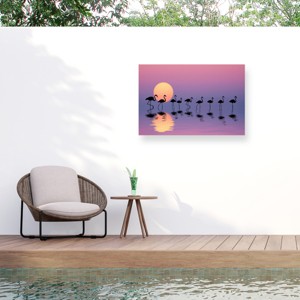 - This Bess Hamiti Family Flamingos outdoor canvas art by X1 Brand is sure to complement any outdoor space with its Modern & Contemporary style featuring silhouettes of flamingos in front of a sunset.