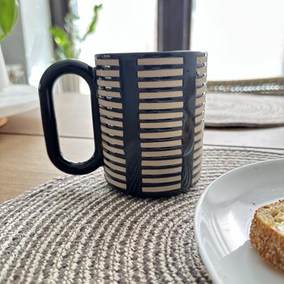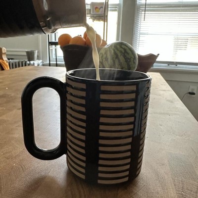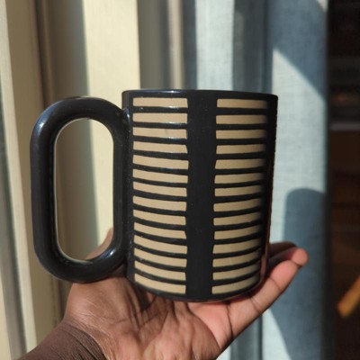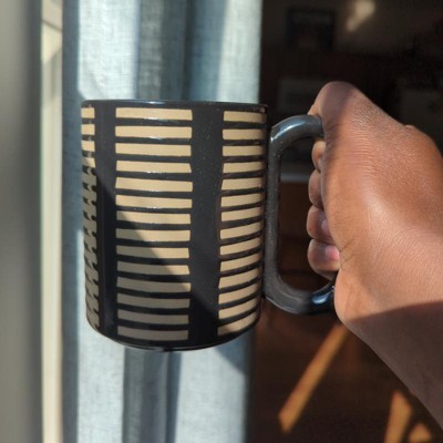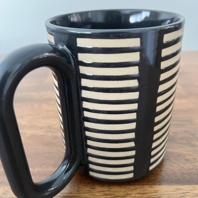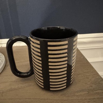 [This review was collected as part of a promotion.] This mug is so unique! The details in the design make this one of a kind. The stripes look like it could be the clay, with the black glaze creating the pattern? Idk how to describe it but for a mass produced mug it is so cute. Definitely worth the cost. I’ve microwaved it, and stuck it in the dishwasher and it has held up well. The black and neutral colors will match with almost anything. I received an incentive to write this review.