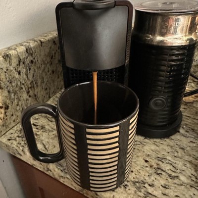 Bring modern style to your mug cabinet with this Broken Blinds Print Mug from Room Essentials™. This coffee mug features a broken blinds pattern on a black backdrop to add an elegant touch to your collection. Made from stoneware, this 16-ounce mug is great for sipping hot and cold beverages — from iced tea to freshly-brewed coffee — and it's both dishwasher and microwave safe for quick cleaning and reheating.