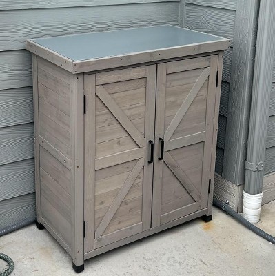 Casafield Outdoor Storage Cabinet and Potting Bench with Metal Tabletop and Storage Cabinet - Wooden Outdoor Garden Patio Workstation Table, Gray