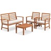 Costway 4 PCS Outdoor Furniture Set with Soft Seat Cushions Stable Acacia Wood Frame White/Navy/Gray
