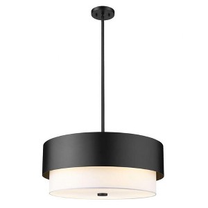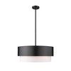 Synch a new look in lighting with a cool mix of Mid-Century Modern and sheer contemporary style that speaks to an elegantly simple living space. This five-light pendant from the Counterpoint collection creates ultra-crisp contrast with a bold matte black finish steel frame and protruding white fabric shade. A round silhouette infuses character to a light fixture delivering ambient illumination in a dining space, main living area, or foyer.