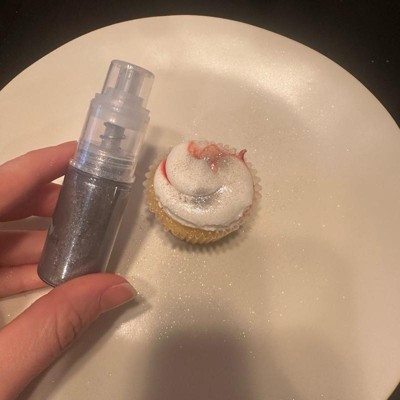 This silver edible shimmer is insane with how much shimmer it can add to your dessert or it even says you can add it to a drink! I added it to my cupcake and wow I was shocked at how much glitter it added and how fun it made my dessert. Each “puff” gives a decent amount of shimmer and you do have to be careful as it gets all over your hands too so be ready to wash your hands!