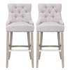 WestinTrends 29" Linen Tufted Buttons Upholstered Wingback Bar Stool (Set of 2), Light Gray - 1 of 4