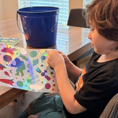 This Easter basket is so fun and perfect for my little guys! It’s nice to have an Easter basket option that is tailored to something they interest. The blue space theme one was so cute and the sticker were done so well! I bought this one and the green dinosaur one and my boys exchanged stickers back and forth. So we have dinosaurs in space Easter buckets here! It’s perfect. I received an incentive to write this review.