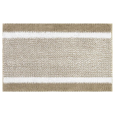 Unique Bargains Chenille Striped Machine Washable Non-Slip Soft Plush Shaggy Bathroom Rug Mat Bath Carpet 1 Pc