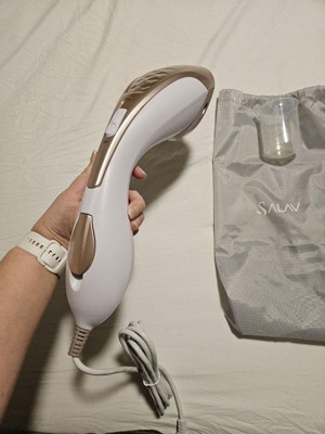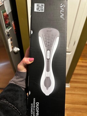 [This review was collected as part of a promotion.] I received this 2 in 1 steamer and iron complementary for review from Influenster and Salav. This is one awesome product. My favorite part is that it is a 2 in 1. I don't own an iron, but sometimes certain things need to be ironed. This product is easy enough to use, just follow the directions. It warms up pretty quick and to the perfect temperature. I use this for clothes, bedding , holiday napkins, basically anything that needs to be de-wrinkled. It's so simple and easy to use. It is also a good size, not too big or small. Due to its size, it could easily be used for traveling. Overall, it's a great, efficient hand-held steamer perfect for all your de-wrinkling needs.
