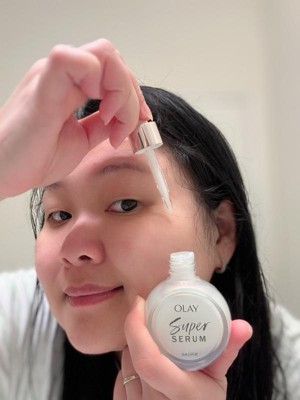 [This review was collected as part of a promotion.] This is actually my third bottle of Olay Super Serum!! It’s the perfect product for glowy, smooth, radiant skin - and I love that it’s a serum that does it all. It’s one of the only drugstore skincare products that I’ve consistently returned to, and it can easily compete with higher end brands. I’ve used it both in morning and night routines, and it hasn’t made any other formulas pill which is a huge bonus. The dropper packaging works for this texture, and I’m able to get all of the product out of the bottle with the dropper!