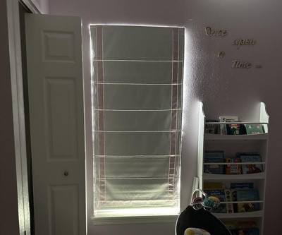 31"x64" Sun Zero 100% Blackout Hailey Ribbon Border Cordless Roman Window Shade Pink/White: Indoor Blackout Shades