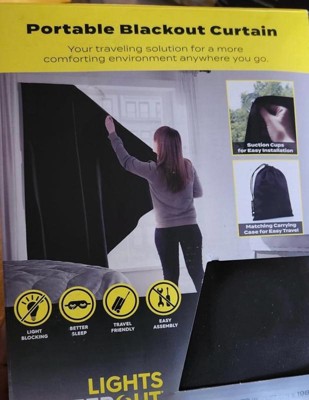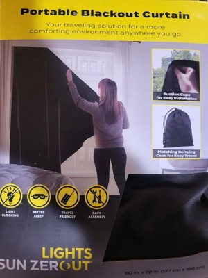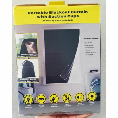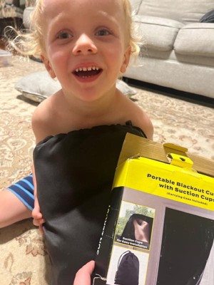 [This review was collected as part of a promotion.] I absolutely love this black out curtain. As a mom this will come in handy when traveling. It works great at blocking out light. It has strong suction cups all around it, to fit different size windows. It even has a carry case for travel.