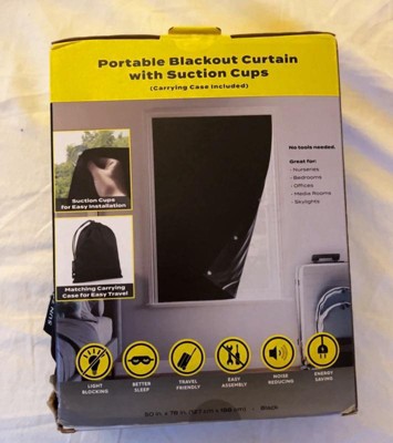 [This review was collected as part of a promotion.] I didn’t realize how handy this curtain would be until I used it. At first, I was really skeptical if this blackout curtain would work at all and it did! I waited for a super sunny day to test it out. Some things to note are the suction cups will ONLY stick to glass; no hardware or window trim. The width is super long so in order to fit it to the window you will either need to pull it taunt across and have the excess hang down at one end or fit all of the suction cups to the window but have it hang down at between each suction cup. It comes with a handy drawstring bag to make it easy to travel with and store. We will continue using it for travel and when we need a little extra rest.