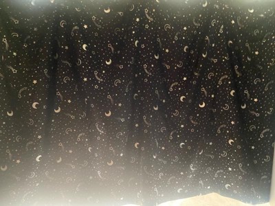 [This review was collected as part of a promotion.] I was really skeptical if this starry blackout curtain would work at all and it did! I waited for a super sunny day to test it out. Some things to note are the suction cups will ONLY stick to glass; no hardware or window trim. The width is super long so in order to fit it to the window you will either need to pull it taunt across and have the excess hang down at one end or fit all of the suction cups to the window but have it hang down at between each suction cup. It comes with a little pouch to make it easy to grab on the go and the cutouts are a nice detail that my kids enjoyed looking at before drifting off.