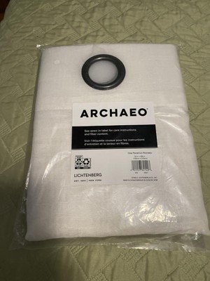 52"x63" Archaeo Light Filtering Slub Textured Linen Blend Black Grommet Top Curtain Panel White: Modern Indoor Decor