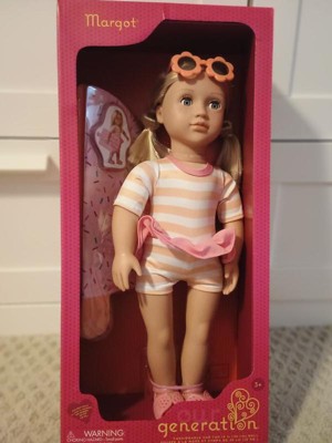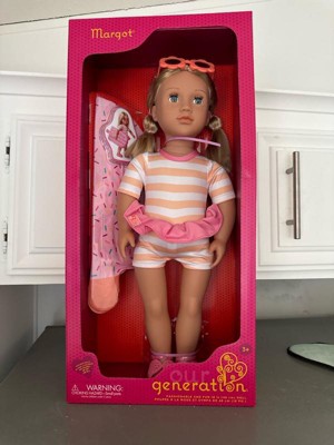 - 18-inch Doll with Swimsuit: Explore beach day waves and vacay adventures with Our Generation 18-inch doll Margot!