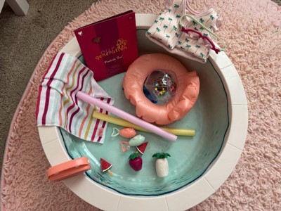 [This review was collected as part of a promotion.] Wow! This was so much bigger than expected and I’m so excited I was able to get this for my daughter! She put water inside to make it more realistic! She goes through periods of liking and not liking dolls! But this set is so fun! It has floaties and everything you could need for some poolside fun! Thank you for letting me have the chance to review it!