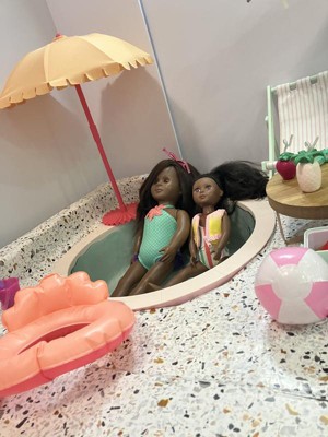 Our Generation Poolside Fun Pink Pool Playset and Accessories for 18" Dolls: Includes Sunglasses & 17 Pieces
