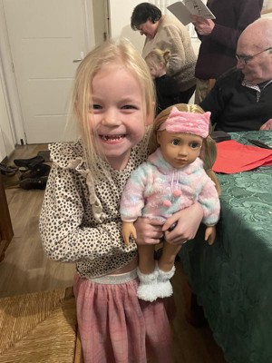 My daughter so happy to have « her little girl » for Christmas