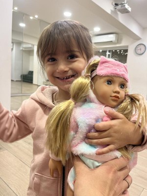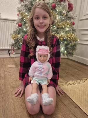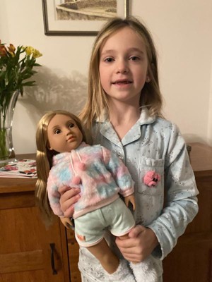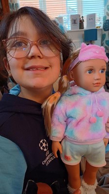 Dream up slumber party fun with Our Generation 18-inch doll Mandy! She has a huggable soft body and lifelike features to delight doll fans during playtime. Her long dark-blonde hair is fun to style in many ways, and her unique gray eyes really close when it’s time for sweet dreams! Mandy’s kitten-inspired pajama is oh-so fuzzy and soft with cute cat ears on the hood. She also wears matching plush socks and a kitten eye mask with comfy pajama bottoms to complete her playful look. For kids who love dress-up, Mandy’s outfit is easy to put on and remove, so they can mix, match, and create even more styles on any adventure. Our Generation dolls make a great gift for kids ages 3+ (small parts), encouraging them to imagine their own unique stories.