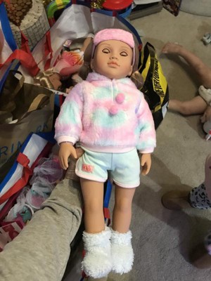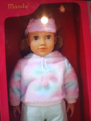 Very pretty doll and the clothes are soft; however, it isn't easy pulling up the attached hood over her pigtails. Other than that Mandy is a great doll!!