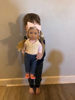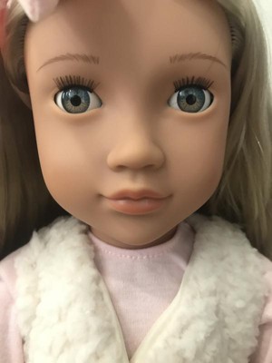 [This review was collected as part of a promotion.] The doll was larger than expected, so sizing is great. Her eye close when you lay her down which is always fun for kids to play with. The outfit she comes in is soft and stylish. I love on the back of the packaging there is a story from a little girl and also “Emmie” makes the doll feel very personalized!