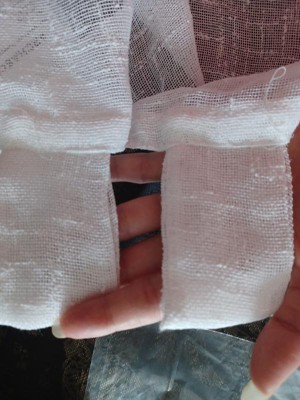 [This review was collected as part of a promotion.] i like the color, it’s true white, not cream or yellow tone. i washed it and no need to steam or ironing . wrinkle free. east to handle. the top with wide loops and suitable for different size rods. it’s sheer is good too.