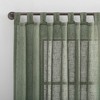 Add coziness and warmth to any space with the raw linen-like texture of Burlap Weave Linen Blend Tab Top Curtain from Archaeo. The linen blend sheer fabric gently captures light while adding privacy. Tab top designed for curtain rods up to 1 ½" in diameter. Sold as individual panels measuring 50" width by 63" length in color moss green. Measure carefully before selecting your desired size and quantity. Rod not included. Machine wash cold on gentle cycle. Use non-chlorine bleach when needed. Tumble dry on low heat.