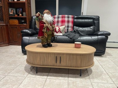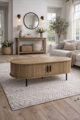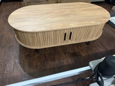 LuxenHome Oval Coffee Table with Storage, 47" Mid Century Modern Fluted Storage Center Table with Sliding Door for Home, Living Room,Office Brown - 1 of 4