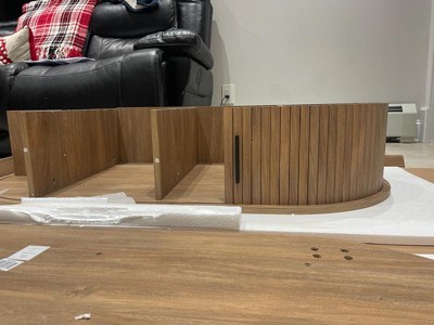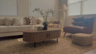 [This review was collected as part of a promotion.] I love the Aria tambour coffee table. It is the perfect size for my den area because of the oval shape. The modern design is absolutely my style. The hidden storage area is a plus for a clutter free space.