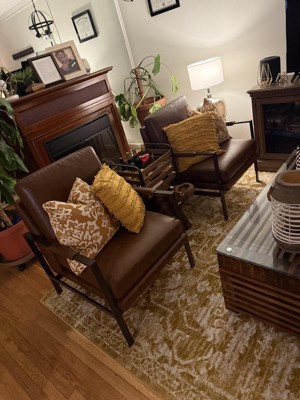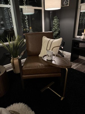 Signature Design by Ashley Peacemaker Accent Chair, Brown Faux Leather Upholstered Modern Metal Frame Armchair