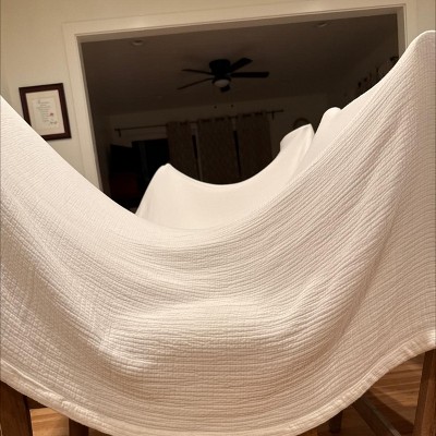 so soft! for a lightweight blanket it feels weighted! beautiful color!