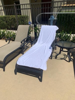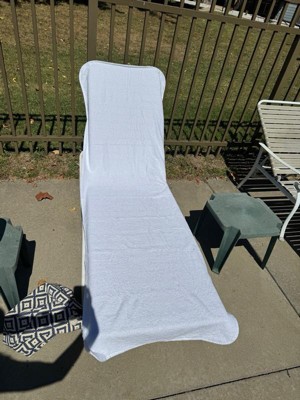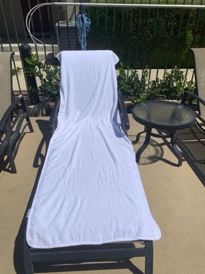 [This review was collected as part of a promotion.] I received this product in exchange for my honest review. I live in an apartment community with a shared pool so a towel for the loungers is a must. I love that I can slip the pocket over the back of the chair to keep it in place - no more having to clip it on. And the length of the towel is perfect to completely cover the chair/lounger.