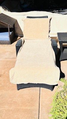 [This review was collected as part of a promotion.] I am so impressed with this American Soft Linen Chaise Lounge Cover. It is great quality as the towel is very thick and soft. I love that I can get another year out of my lounge cushions by using this because as you can see in the picture, my cushions are worn and discolored. The pocket is great to store my phone and other items I want to keep out of the sun. This is an awesome chaise lounge cover that I highly recommend.