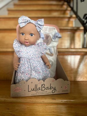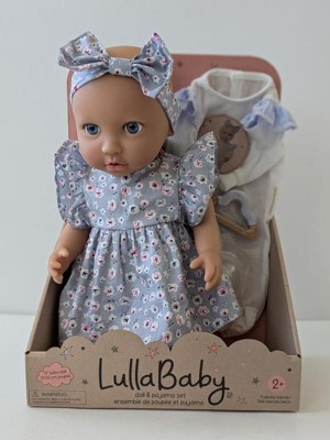 LullaBaby Baby Doll with Blue Eyes Floral Dress and Pajama Set