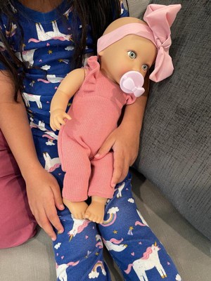 [This review was collected as part of a promotion.] Aaaaaawwwwwww this is such a cute babyyyyy!!!!!!! It is a really nice baby doll with her bassinet and it comes with pacifier. The doll is so soft and perfect size for my 5 year old she loves to take it with her everywhere. Its very easy to take card and keep clean over all 10/10