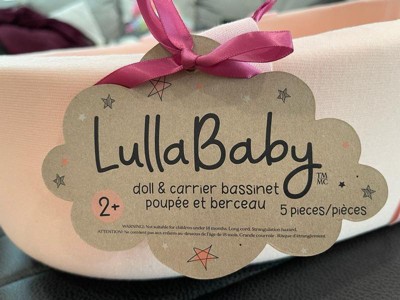 [This review was collected as part of a promotion.] Lullaby's little doll and carrier bassinet are absolutely adorable. This doll is beautiful and perfect for my toddler. There are 5 pieces in this set doll, bassinet, pacifier, headband, and adorable outfit. So cute and so affordable!