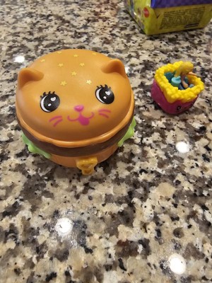 [This review was collected as part of a promotion.] This is a cute surprise set from Polly Pocket! We received the hamburger cat and loved how it has a small fry car that launches from it! My 5 year old thinks it's "sooo cute". For being small, it comes with some fun hidden surprise accessories and a small Polly doll in the ketchup and mustard surprise packets! The refrigerator door in the Polly house opens too. This is a fun toy for kids who love opening surprise items.