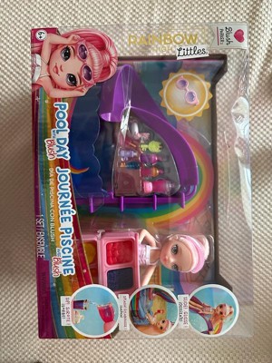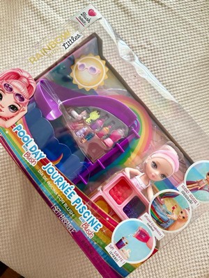 Rainbow High Littles Pool Day Playset + Small Doll, Pool with Rainbow Slide, Accessories and Smoothie Stand: Doll Playsets, Removable Clothes