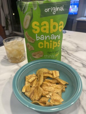 These Saba banana chips are so good. I really like crunchy snacks so I was really excited to give these a try. They have a good strong banana flavored. I really like that they are glazed so you get sweetness, but they are not overly sweet. They are crispy thin, and absolutely delicious. They are the perfect snack when that chip craving hits, the only bad thing is they are so good that it is hard for me to stop at just one serving size. I really like them and will definitely be buying more.