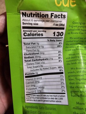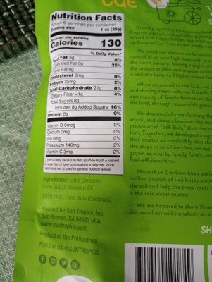 Surprisingly good and addicting. My kids and husband really like them. The banana flavor is subtle. The crunch is very satisfying a good substitute for potato chips. Already bought another bag! Per serving 5g of saturated fat and 8g sugar.