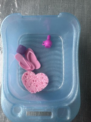 [This review was collected as part of a promotion.] Really enjoyed this doll! We love all of the accessories. The dolls fingernails and toenails turn a pink color once you put them in cold water. You can get rid of the color by putting the dolls hands and feet in hot water. I dont see the purpose of the blue and pink other than changing the color of the water, but it would’ve been good without it as well. I just wish the basin attached to the chair instead of the chair just resting on top of it. Overall, we love this toy