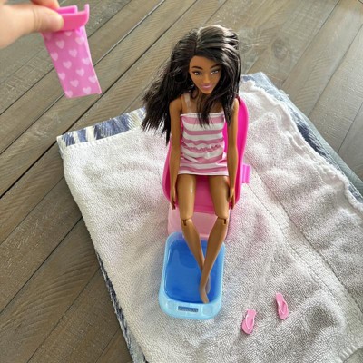 [This review was collected as part of a promotion.] This Barbie is amazing! The doll comes with a chair and pedicure tub in addition to little bottles of polish a towel, sponge and flip flops! The little bottle even hooks to a Barbie’s hand! The finger and toenails will change color. My grand and her friend had such a good time with this set!